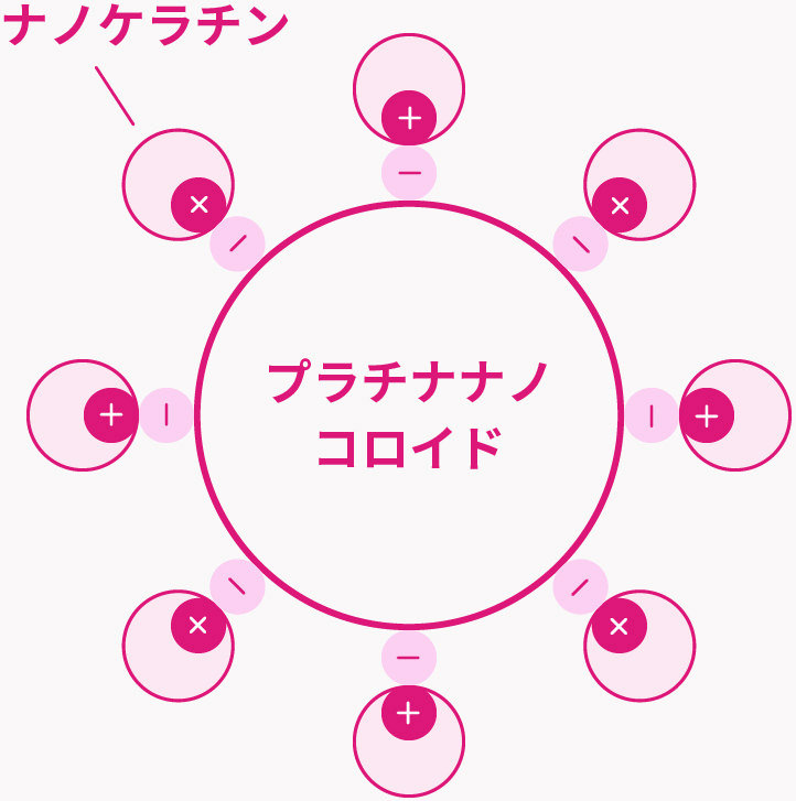 *1当社比 *2加水分解ケラチン(羊毛)、白金(保湿補修) *3ナノ補修成分「プラチナナノケラチン(*2)」が毛髪に浸透し、髪にハリコシとツヤを与えること